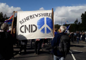 El primer dia van assistir a una manifestació antimilitarista de més d’un miler de persones a la base naval de submarins nuclears HMNB Clyde de Faslane (Escòcia), un monstre enmig d’un paisatge idíl·lic envoltat d’una enorme tanca metàl·lica. La marxa, molt vistosa, amb pancartes, gegants i gent disfressada amb motius pacifistes, va tenir tothora un to reivindicatiu i festiu. Al llarg de tot el recorregut es van succeir cants i eslògans sempre amb un to festiu.